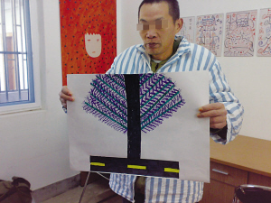 兩年前的圣誕節(jié)之際,南京祖堂山精神病院的一群精神病人,在當(dāng)代藝術(shù)家郭海平為期三個(gè)月的精神病人藝術(shù)實(shí)驗(yàn)項(xiàng)目的“發(fā)掘”下浮出水面,他們中有人的作品被藝術(shù)界譽(yù)為“梵高般的杰作”,并在2007年11月于北京798藝術(shù)區(qū)展出時(shí)引起了轟動(dòng)。但在那個(gè)短期實(shí)驗(yàn)項(xiàng)目結(jié)束后,這些精神病人藝術(shù)家又回復(fù)他們的常態(tài),再無緣接觸畫筆。變化,在兩年后的今天出現(xiàn)了……
