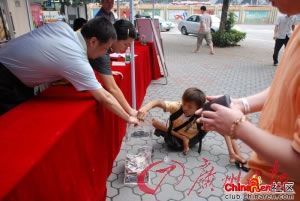 2008年5月12日下午,汶川地震爆發(fā)。在廣州華樂街的支援抗震救災(zāi)募捐活動(dòng)中,一個(gè)用手走路的乞丐,來到現(xiàn)場(chǎng)說“我要捐款”。