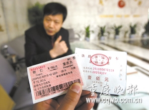 王柏華是恒天無(wú)極照明西南總代理的副總經(jīng)理。王介紹,年前他到貴州銅仁招商,元旦當(dāng)天和朋友陳先生一起在銅仁買(mǎi)了兩張從銅仁到重慶的K586次列車(chē)短程票,無(wú)座。