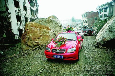 眼見(jiàn)一對(duì)貼著大紅喜字的結(jié)婚車隊(duì)擦肩而過(guò),敏銳的遲阿娟跳下車拿著鏡頭緊追,“我以最快速度緊追行駛的迎親車隊(duì),差點(diǎn)跑斷腸子……”未能打聽(tīng)到進(jìn)一步信息,遲阿娟很遺憾:“他們說(shuō)新人不能下轎,車子不能停留,新人不愿說(shuō)出名字,更不愿留下電話,只是說(shuō):我們是北川人,地震雖然奪走了親人、財(cái)產(chǎn),但是,生活還是要繼續(xù)!”