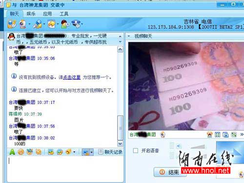 據(jù)記者與該男子聊天時,QQIP地址欄顯示對方IP在日本,接通視頻聊天后,IP地址又更換為“吉林省123.173.184.9:1308”。據(jù)該男子提供的手機號碼1363627****的歸屬地為湖北恩施,另一個手機號1313016****的歸屬地為遼寧鞍山。同時向記者提供了一個農(nóng)行帳號和一個工行帳號。
