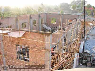 發(fā)生坍塌的樓房位于陸川縣良田收費(fèi)站附近,是良田公路養(yǎng)護(hù)所的一棟在建機(jī)械倉庫。該樓房占地面積有250平方米左右,高7米,只有一層,公路養(yǎng)護(hù)所打算建成后,用來存放養(yǎng)護(hù)公路的車輛、工具等。發(fā)生事故前,該樓房已快竣工,正準(zhǔn)備封頂收尾。
