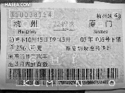 A 票號:表明對于某個(gè)售票窗口或終端連續(xù)售票的編號,由字母和6位數(shù)字組成。有時(shí)字母前方還有數(shù)字,一般表示售票窗口編號。