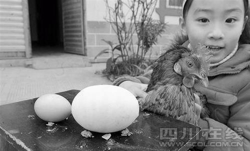 對此,四川農(nóng)業(yè)大學(xué)動(dòng)物科技學(xué)院教授劉益平說,“一般這樣大的異形蛋是在雞蛋已成型后被輸回去的,很可能是蛋包蛋!
