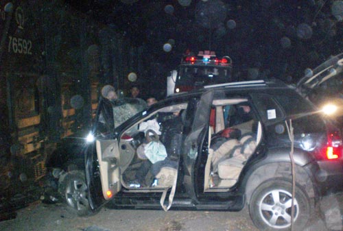 1月19日凌晨,河南漯河市區(qū)五一路與南環(huán)交叉口處發(fā)生了一起汽車與火車相撞的慘。阂幻砭扑緳C駕著一輛小汽車迎頭撞上了一輛正從東向西急速行駛的火車車輪上。由于慣性,小轎車在發(fā)生碰撞后又被彈了回來,火車被迫停下。汽車上一名駕駛員被困變形車體內(nèi)血肉模糊、生命垂在旦夕。緊急時刻,駐地消防特勤官兵迅速趕到現(xiàn)場,經(jīng)過10余分鐘的營救,受傷駕駛員被成功救出。
