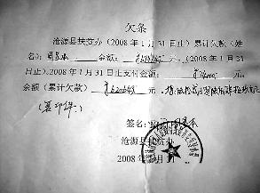 “滄源縣的村民們安居樂業(yè)了,他們的喜悅中有我們永平縣農(nóng)民工的無數(shù)汗水,可是滄源縣扶貧辦拖欠我們的60多萬元工資余款至今還是白條一張。我們承包的工程是扶貧項目,有國家下?lián)艿膶m椃鲐氋Y金,兩年來我們不斷去討要我們的血汗錢,可扶貧辦總說沒有錢,那么這60多萬元扶貧資金哪去了?”農(nóng)民工周顯本對此大惑不解。