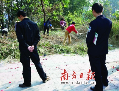 “尸體!”這是阿龍的第一反應(yīng),盡管不是很確定,同伴還是撥打了報警電話。近十輛警車隨后到來,這塊是非之地瞬間被警戒線圍了起來。法醫(yī)在草叢里進進出出。