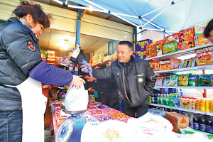 在這個(gè)市場(chǎng)里,幾乎所有的年貨都能買到:糖果、瓜子、蔬菜、水果、鞭炮、煙酒……連網(wǎng)吧和復(fù)印店,都能在市場(chǎng)里找到。