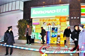 就在這家專賣店隔壁的7-11便利店的一名陸姓工作人員說,晚上大約7時(shí)30分,她在便利店里工作時(shí),突然聽到隔壁“嘭”的一聲響,她趕緊到隔壁看看情況,就在聯(lián)想專賣店門口不遠(yuǎn)處,一個(gè)男子倒在地上,他的身上流了很多血。