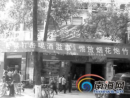 春節(jié)期間,五指山市民廖先生在五指山市主城區(qū)新華書(shū)店斜對(duì)面和毛陽(yáng)鎮(zhèn)岔路口(五指山往瓊中、樂(lè)東的分路)看到,掛在路邊的大橫幅上的標(biāo)語(yǔ)竟然寫(xiě)著:“嚴(yán)禁打擊喝酒滋事,惕放煙花爆竹”,落款是五指山公安局。如此讓人大跌眼鏡的橫幅讓他感到很吃驚。(記者李灝通訊員廖涌權(quán)攝影報(bào)道)