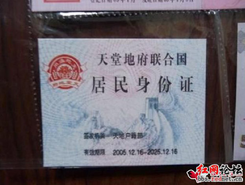 網友們在表示“雷人”的驚訝的同時,更多地嘲弄的是冥幣創(chuàng)意者的“天才創(chuàng)意”!跋嫱撂飯@”留言說,“天啦,冥府還有身份證!”當然也有反感者:“誰的創(chuàng)意,真惡心!”網友“打不死的強仔”憤慨道。其中有一位“yong_qi520”的網友就跳出事實本身發(fā)表感慨:“嘿嘿,錢嘛,放在身上是紙,用出去就是錢,死了就是錢紙!”幾名網友紛紛表示贊同。還有一名調侃的網友beavailable說:“如此神通廣大的天地通用紙幣,不知道我們創(chuàng)意者自己是否也能拿來用上一用?”(記者 湯紅輝 實習生 莫李麗)
