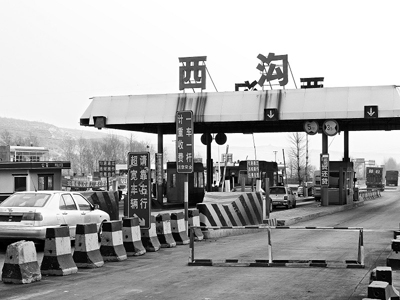 西溝收費(fèi)站共設(shè)置四個(gè)收費(fèi)口,2月7日中午只有兩個(gè)收費(fèi)口開通,其余兩個(gè)收費(fèi)口關(guān)閉,并在收費(fèi)口放置了鐵架子。經(jīng)詢問,一名收費(fèi)員說:“封閉收費(fèi)口的電腦壞了,剛才正在修電腦!币娪腥擞檬謾C(jī)拍攝被堵車輛時(shí),西溝收費(fèi)站突然沖出了幾名工作人員,讓榆林至神木方向的另外一個(gè)通道開始放行。