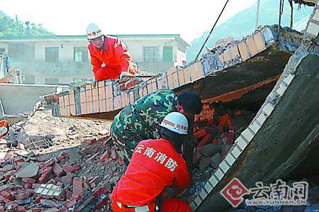 11日12時04分,羅平縣阿魯鄉(xiāng)樂戈必小學(xué)的一所廢棄的兩層危房倒塌,幸好學(xué)生都放學(xué)回家,房屋旁的兩名群眾來不及躲閃,被埋在倒塌的房屋下。其中一名群眾被找到時確認(rèn)已不幸身亡,另一名群眾則生死不明,情況十分緊急。羅平消防大隊接警后,經(jīng)過兩個多小時緊急營救,被困群眾被救出,但由于被壓時間過長,不幸遇難。