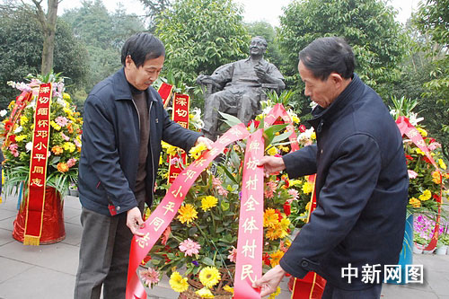 廣安區(qū)協(xié)興鎮(zhèn)黨員干部及牌坊村數(shù)百名村民當(dāng)天一大早就來到鄧小平銅像前敬獻(xiàn)花籃。村民代表李良國對記者說:“有了好老鄉(xiāng)鄧小平的改革開放政策,牌坊村民過上了富裕的生活,F(xiàn)在,村民們又開起了農(nóng)家樂和農(nóng)家客棧,發(fā)起了‘旅游財(cái)’。吃水不忘挖井人,我們更應(yīng)該時(shí)刻記住小平他老人家的恩情!