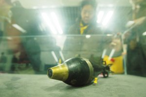 展覽現(xiàn)場(chǎng)一枚炮彈“現(xiàn)身”展柜