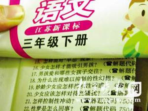 而對于在低年級書本中出現(xiàn)涉性的問題,該人士表示自己并不清楚,可能是相關(guān)機(jī)構(gòu)自己添加的。隨后他又補(bǔ)充說,這些話題其實(shí)是和素質(zhì)教育有關(guān)系的,在學(xué)校里學(xué)生是學(xué)不到的,因此就作為輔導(dǎo)材料的補(bǔ)充,多增加點(diǎn)知識也是好事。