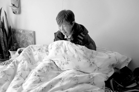 “我昨晚上是被凍醒的……”市民李女士說,20日晚,她在睡夢中被凍醒!皬19日晚上開始,我們家屋子里面的暖氣片就幾乎是涼的了!痹诮鸷踊▓@小區(qū),一居民一家三口擠在一張床上身穿棉衣、蓋著棉被看電視,溫度計(jì)上顯示屋里的溫度僅為7℃。