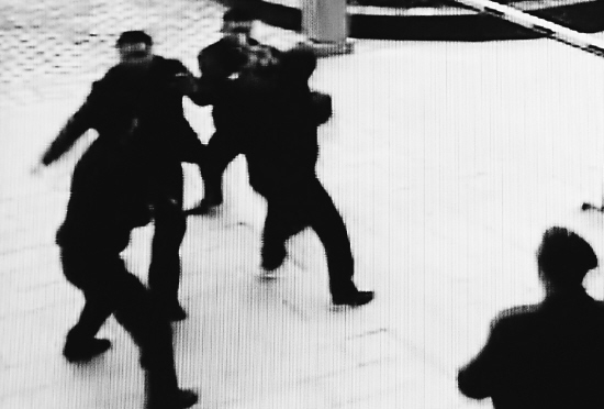 昨天上午9點40分左右,文三路與教工路口東南角的立元大廈,10多名身著保安制服的人,與3名男子在北門口起了激烈沖突。