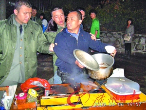 據(jù)曹圖深介紹,3月6日晚8時15分,7名城管隊員巡查至南方醫(yī)院門前的公交站時,見到近段時間一直在該處無證占道經(jīng)營油炸臭豆腐、曾被多次教育勸諭的江西籍“走鬼”陳×鴻夫婦又在該處開檔,便上前要求陳×鴻夫婦迅速收拾“架撐”離去,隨即遭到陳×鴻惡罵。分隊長高斌與隊員周翌、徐勇看見陳×鴻支在手推車上用來炸臭豆腐的一鍋油正冒著煙,便一邊按住油鍋,一邊繼續(xù)勸其趕快收拾好離開。