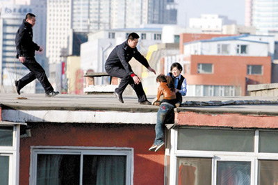 后來,我就趁撿衣服的工夫,看她沒有防備,就動手抓住了她。當(dāng)時她的大半個身體都懸在了樓外,我只能用腳死死地抵住樓頂,后背都被硌破了,鞋跟也磨禿了。