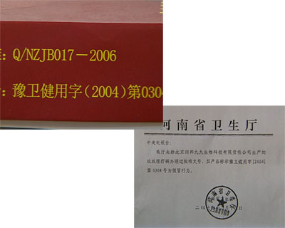 這是記者在商場(chǎng)里買到的玖玖理療褲,在這個(gè)包裝盒上記者發(fā)現(xiàn),玖玖理療褲的生產(chǎn)廠家是北京潤(rùn)邦玖玖生物科技有限公司,而奇怪的是產(chǎn)品的批準(zhǔn)文號(hào)卻來自河南,北京的廠家生產(chǎn)的產(chǎn)品,為什么需要河南的批號(hào)哪?河南省衛(wèi)生廳給記者發(fā)來了這樣的傳真,上面寫著,我廳未給北京潤(rùn)邦玖玖生物科技有限公司生產(chǎn)的玖玖理療褲辦理過批準(zhǔn)文號(hào),其產(chǎn)品標(biāo)示豫衛(wèi)健用字(2004)第0304號(hào)為假冒行為。