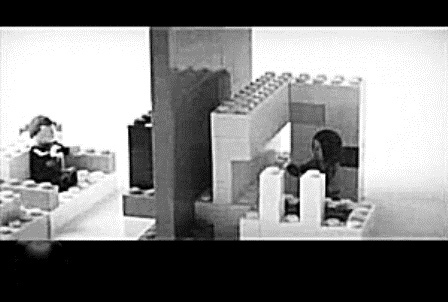 老康和姜金牙商量,決定用積木模擬出老康和女友從認(rèn)識(shí)到相愛的一些典型場(chǎng)景,包括醫(yī)院、地鐵站、教堂等。然后,由積木組成的小人分別“出演”男女主角。同時(shí),將老康和女友劉偉二人經(jīng)歷的一些故事經(jīng)過藝術(shù)加工,編成一幕幕短劇。