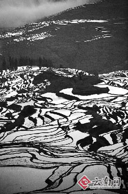 哈尼梯田,在當?shù)厝说难壑校m有選擇上的無奈,卻是不可或缺的寶貴資源;在攝影家的眼中,是美奐絕倫的藝術(shù)天地;在不少專家學者眼中,它是值得保護的凈土,而且還有很多神奇之處有待挖掘。