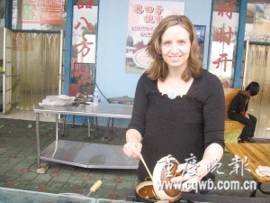 “我先來(lái),是這里的地主!避(chē)凱茜說(shuō),開(kāi)餃子店幾年來(lái),她學(xué)會(huì)了怎樣與菜市場(chǎng)的小商小販討價(jià)還價(jià),學(xué)會(huì)了怎樣招徠顧客。其他老外初入洋人街開(kāi)店,她主動(dòng)幫忙,給他們當(dāng)翻譯等。為給新來(lái)的老外“扎場(chǎng)子”,她還經(jīng)常組織朋友去照顧生意。
