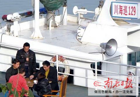 調(diào)查情況是:2月12日,海事囤船和海巡艇的值班人員是彭某和馬某兩人,邵某和張某輪休。當(dāng)天下午,邵某的4位親友來(lái)到船上看他,因天氣好提出打牌。于是4位親友在船上打了約2小時(shí)的麻將,邵等人在旁邊觀看。3月13日,值班人員是張和邵,彭和馬輪休,下午3時(shí)左右,彭的兩位戰(zhàn)友和一位女同志共3人來(lái)到船上找彭某,也提議打一會(huì)兒牌,隨后,彭和他的兩位戰(zhàn)友在船上斗了約2小時(shí)的地主,邵等人在旁邊觀看。
