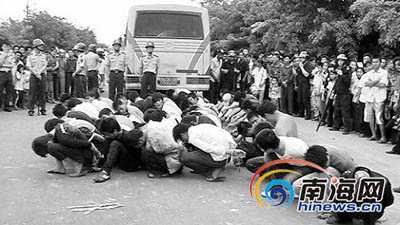 兩名沙場(chǎng)老板因經(jīng)營(yíng)利益問(wèn)題產(chǎn)生糾紛,雙方各組織幾十人乘3輛大卡車持長(zhǎng)粉槍、長(zhǎng)勾刀等兇器欲進(jìn)行火拼。臨高警方得到消息后迅速組織160警力、20余輛警車圍追堵截,成功制止了一起聚眾斗毆事件,避免了流血事件發(fā)生。此次行動(dòng),臨高警方共查扣違法車輛6部,抓獲涉嫌持械斗毆嫌疑人58名。其中43人被刑拘、12人被行政拘留、3人待查。