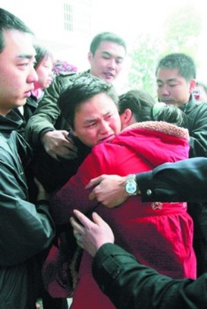 昨日下午4時05分左右,陰雨綿綿,在長沙市看守所,當(dāng)犯罪嫌疑人唐斌被警方押出大門,其身懷六甲的妻子撲到他懷里痛苦失聲時,他流下了悔恨的淚水。
