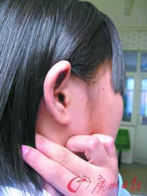昨天下午,記者在廣州市中西醫(yī)結合醫(yī)院見到了小晴,她看上去精神有些恍惚,面部微腫,腹部有輕微皮外傷。醫(yī)生為她檢查了耳部后,診斷為“耳膜穿孔,嚴重程度中等”。