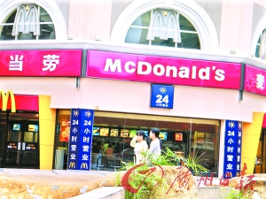 該麥當(dāng)勞分店的一名保安正與記者聊天,也被李經(jīng)理召回,“我們的員工不能接受任何采訪!”