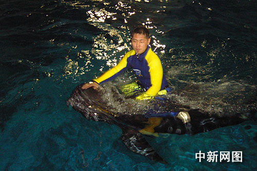 中新網(wǎng)杭州4月13日電(見(jiàn)習(xí)記者 王磊)2009年4月底,第五屆中國(guó)國(guó)際動(dòng)漫節(jié)即將在浙江杭州正式拉開(kāi)帷幕,據(jù)悉,杭州極地海洋公園將首次與動(dòng)漫節(jié)進(jìn)行合作,屆時(shí)將首次推出領(lǐng)航鯨表演,日前,前期訓(xùn)練正在緊鑼密鼓的進(jìn)行中,據(jù)極地海洋公園有關(guān)負(fù)責(zé)人介紹,領(lǐng)航鯨表演在世界上也數(shù)首次,在中國(guó)國(guó)內(nèi)更是首例,動(dòng)漫節(jié)期間兩只領(lǐng)航鯨將會(huì)為游客們將帶來(lái)一場(chǎng)別開(kāi)生面的視覺(jué)盛宴。海洋公園有關(guān)負(fù)責(zé)人透露其中一項(xiàng)表演是工作人員騎在鯨魚(yú)身上環(huán)場(chǎng)一周,那名工作人員將幸運(yùn)的成為了中國(guó)首位“鯨騎士”。