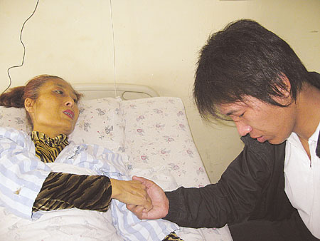 其實,早在2006年,在母親患病中期,兒子常津銘就從網(wǎng)上查到關于肝臟移植手術的資料,但沒想到母親的病真的發(fā)展到這一步。當看著往日的漂亮媽媽皮膚黑黃,人也越發(fā)消瘦,兒子的心里難受極了。他安慰母親:“老媽,你放心,需要換肝我一定給你!碑敃r,媽媽愣住了:“兒啊,你胡說什么,媽都這么大年紀了,你以后的路還長著呢!”“不行,老媽,我能救你而不救,我會遺憾一輩子的!”