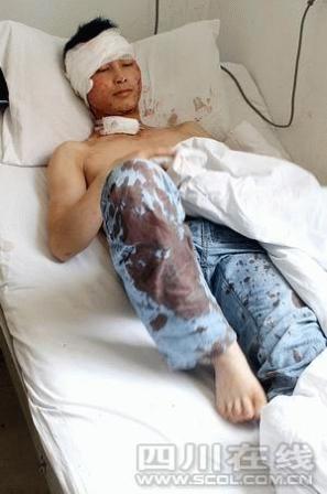昨(20)日上午,在建材路某工地做工的南充銀川人李軍(音)躺在醫(yī)院急診室,被菜刀砍得半截脫落的右耳已被縫合。事情的起因是李軍的同鄉(xiāng)工友李兵(音)欲送懷孕的妻子回老家,便向工隊(duì)老板提出要支取工資。由于沒(méi)立刻領(lǐng)到錢,李兵頗感不滿。李軍好心安慰他說(shuō)“工資要發(fā)”!翱伤詾槲沂窃跒槔习宄鲱^,趁著酒勁就把我耳朵砍了!