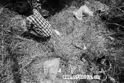 昨日下午,蔣某雨等4人帶記者來(lái)到事發(fā)地點(diǎn)。記者發(fā)現(xiàn),此處距最近的工廠約700多米,馬路上車來(lái)車往,但很少有行人經(jīng)過(guò)。馬路邊坡下的草叢約一米多高,從坡上很難發(fā)現(xiàn)藏在草叢中的人。幾只鞋和一條皮帶散落在草叢中,蔣某雨說(shuō),還有些鞋和褲子被警察拿走了。