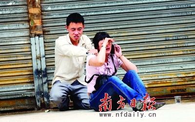 鄺女士不?奁,偶爾舉起手機(jī)打電話,她的脖子下有一把30厘米長(zhǎng)的刀,她身后的重慶男子張×述不停喊著:“別逼我!”……昨日上午10時(shí)許,鄺女士乘坐公交車至三元里古廟站下車,正沿著廣園中路走,兩名男子突然出現(xiàn)在她面前,其中一名用水果刀抵著她的脖子。這對(duì)來(lái)自重慶開縣的兄弟張×述和張×均聲稱要錢救家中老母親。警方與之僵持了90分鐘,終于將其制服,鄺女士獲救。