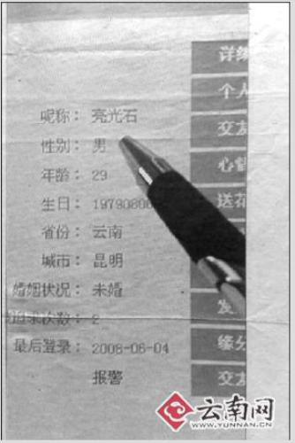 去年3月,網(wǎng)名為“迷惑夢中人”的小麗(化名)閑著無事,便上云南信息港的交友網(wǎng)上玩耍,當看見網(wǎng)名叫“亮光石”的征婚廣告:“29歲,無不良嗜好,采礦業(yè)執(zhí)行官,月收入兩萬元。誠征20至28歲的單身女孩為終身伴侶,學(xué)歷高中即可”時,小麗記下了他的聯(lián)系方式,雙方還互相留下QQ號碼。