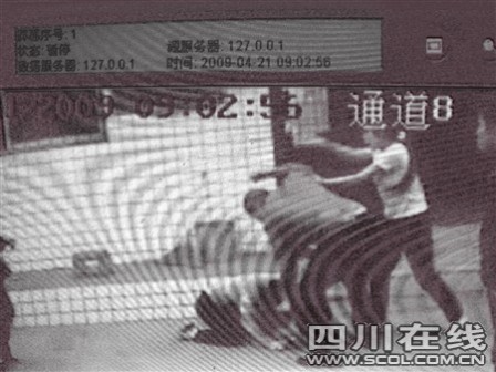 記者從錄像中看到,事情已發(fā)生約10分鐘左右時,受傷的田曉蘭坐在辦公樓大門口哭泣。突然,一個蓄平頭的高個子沖過來,一拳打在她頭上,隨即又揪住田頭發(fā),拉到路中間,將其摔倒在地,用腳踢頭部,然后又拳腳相加,任憑旁邊另外一位女收費員如何勸解,絲毫沒松手。其間,一個穿制服的男子過來勸解,但該男子也仍不予理會,其粗暴令人震驚。