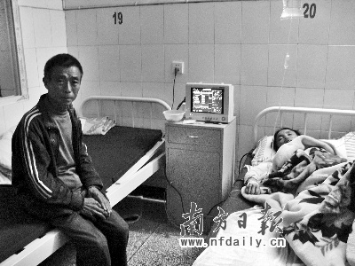 坐在醫(yī)院走廊的座椅上,付前桶的焦急爬上眉稍,操重慶方言的他,面對(duì)記者的提問,并不知道更準(zhǔn)確的表述。他努力手嘴并用,并通過同村村民用普通話向記者翻譯。