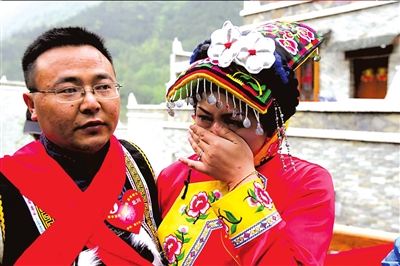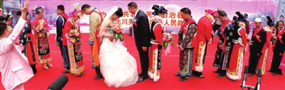 “吉娜女神為證,祝福這些歷經(jīng)苦難的人們,愿他們的未來幸福安康!”昨天上午,北川縣委、縣政府為20對5·12地震災(zāi)后重組家庭舉行集體婚禮,主持人以當?shù)氐姆绞阶8P氯恕;槎Y在擂鼓鎮(zhèn)貓兒石村吉娜羌寨舉行,上百名中外記者見證了這一盛大場面。