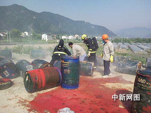 中新網(wǎng)臺(tái)州4月28日電(記者 江耘 通訊員 陳瑛子) 4月28日一大早,浙江臺(tái)州三門(mén)縣環(huán)保局便接到群眾舉報(bào),在該縣海游鎮(zhèn)潺岙村附近的公路上發(fā)現(xiàn)大量塑料桶包裝的不明液體,十分刺鼻,疑似有人非法轉(zhuǎn)移、傾倒化工廢液。