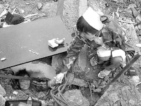 廢墟里,一個(gè)少年被扭曲的鋼筋、預(yù)制板埋著,眼神里流露出對生的渴望;廢墟外,一名穿涼鞋的女護(hù)士,左手提著一袋血漿,右手和少年的左手緊緊握在一起。地震中,這張照片被網(wǎng)友們稱為“汶川大地震中最感人的十大鏡頭”,照片中的女護(hù)士顧云仙,被網(wǎng)友們稱為“最美女護(hù)士”。