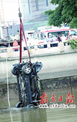 據(jù)了解,前日下午5時許,肇事車輛內(nèi)4人乘坐奔馳車,趕到廣州唱K喝酒之后,開車返回廣州某知名大酒店的途中,發(fā)生事故,車子沖進珠江。