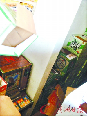 在一家叫“祥瑞豐”的百貨店里,小店內(nèi)一名女工作人員,還領(lǐng)著記者來(lái)到店內(nèi)偏僻處。她掀開(kāi)層層廢紙板后,露出一臺(tái)藏匿其中的老虎機(jī),“他們讓我偷偷藏在這里的”。