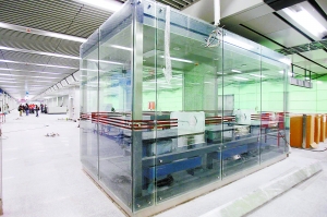 相比目前北京地鐵線路,4號(hào)線站廳面積較大,在站廳中部還有一排約40厘米寬的升降門。據(jù)了解,這些升降門平時(shí)將默默呆在站廳頂部,一旦地鐵站出現(xiàn)火災(zāi)、毒氣等情況,這些升降門將根據(jù)操控依次落下,把站廳與火災(zāi)、毒氣等隔離開來。