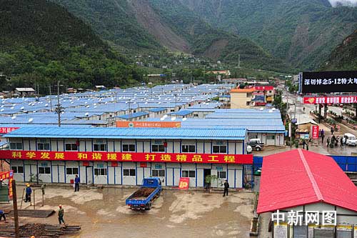 據(jù)了解,劉向陽已于10日下午抵達四川地震重災(zāi)區(qū)北川縣擂鼓鎮(zhèn)羌寨,并第一時間發(fā)回了在災(zāi)區(qū)的所見所聞:鎮(zhèn)上板房安置點是一排排白墻紅頂?shù)钠椒,每家門口都有一個小院,用整齊的木柵欄圍起來,頗有些田園風(fēng)格。每戶人家門上都掛著兩個大紅燈籠,門上還貼著對聯(lián)。有的院內(nèi)還停著摩托車,堆放著從田里收獲的油菜。村中大多數(shù)農(nóng)房也已經(jīng)開工建設(shè),有的村民們已經(jīng)搬進了新居。當客人進村后,羌族姑娘還跳起了舞蹈,感謝各地人民對他們無私的捐贈。