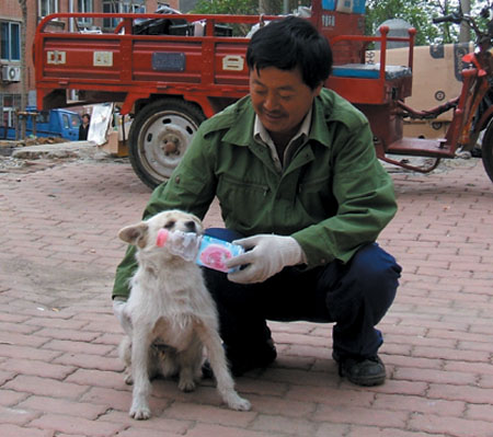 這只流浪的小狗叫小丑兒,原來的主人住在星海街,因為搬家而將它遺棄了。今年4月大,連降了一場很大的雨雪,因天氣的原因,收廢品的王先生沒有出門,在家中把幾天收的廢品整理一下。在搬廢品的時候,王先生突然聽到類似呻吟的聲音,于是就順著聲音找去,看到了一只白色的小狗蜷縮在廢品邊上,瑟瑟發(fā)抖,無精打采的,眼睛里流露出求助的神情。王先生把它抱進(jìn)屋,并給它吃的喝的。當(dāng)天氣暖和時,王先生便把小狗送到了門外,準(zhǔn)備放走,可這只小狗怎么也不肯離開王先生。從此,王先生出去收廢品的時候,走到哪里,小丑兒便跟到哪里,還把街上被人遺棄的瓶子,撿到王先生的跟前。后來,王先生從鄰居們那得知小丑兒的經(jīng)歷,便把它留在了自己身邊。