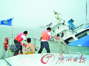 據(jù)廣州沙角海事處張杰副處長介紹,昨天下午4時許,該海事處接到報警稱“有船發(fā)生碰撞!”接警后,該海事處立即出動包括海特1115號、海特1114號共8艘船只趕往事發(fā)海域。7分鐘后,他們便趕到了事發(fā)海域,而后立即開展搜救落水船員行動。